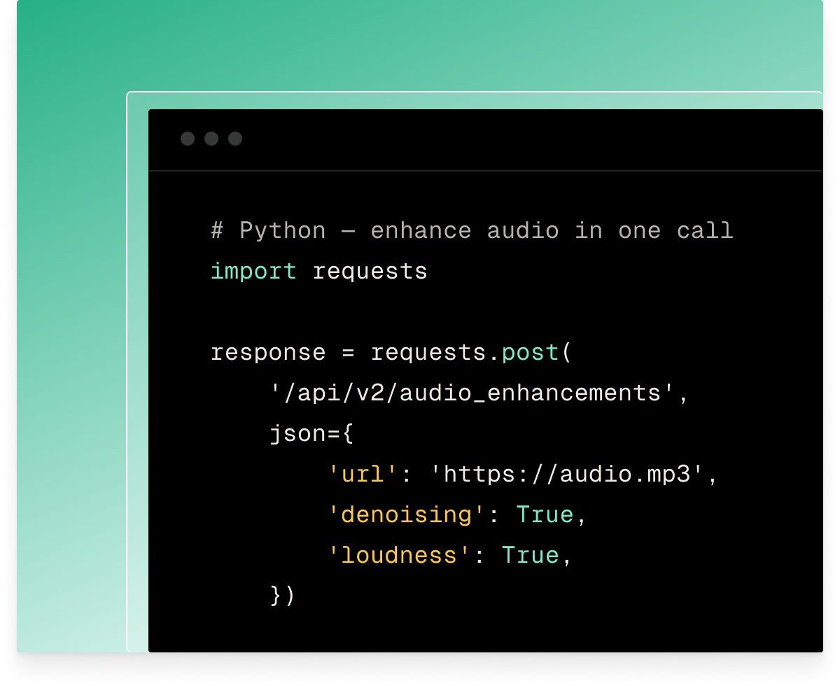 Yes. Noise removal, loudness normalization, and studio processing are all on by default. Each can be turned off independently per API call.