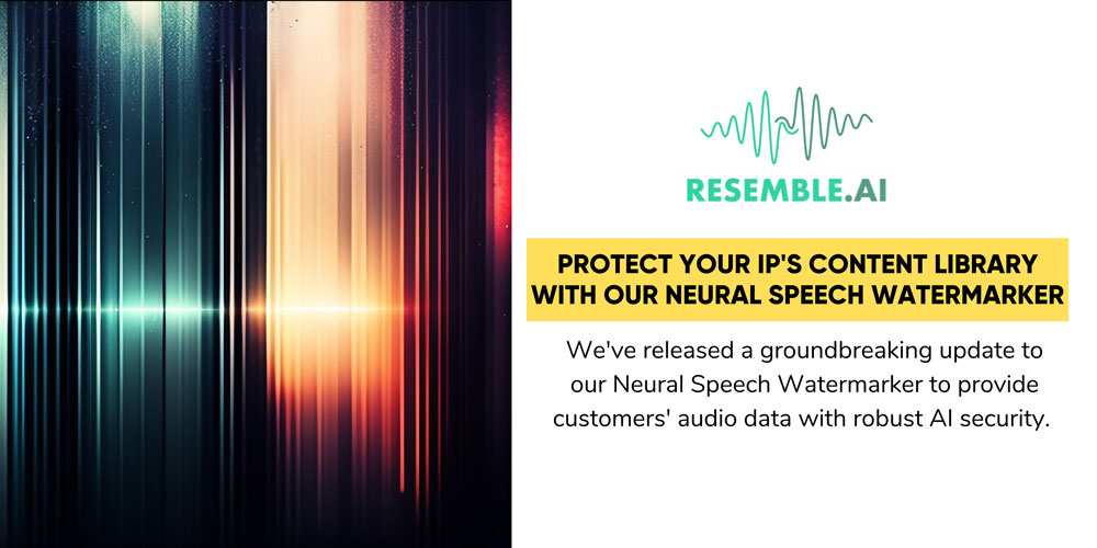 To further cement the robustness of our AI watermark, we’ve taken another giant step forward by fortifying the stability of our watermark which now persists through training. Simply, Resemble AI's watermark can now be trained by another speech synthesis model and remain persistent in the audio data. This new capability not only reinforces the fortitude of our AI watermark but also facilitates better tracking and AI fraud detection. Furthermore, it enhances our ability to mitigate the risk of deepfake AI voice content. Our machine learning model is becoming increasingly adept at distinguishing the nuanced differences between real and deepfake AI voice. The developments build on the AI security and reliability of our platform.
