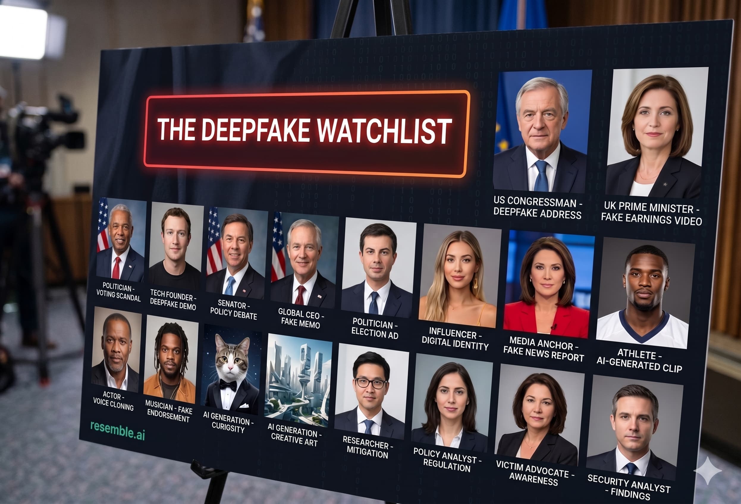 The Deepfake Watchlist is Resemble AI's weekly surveillance of synthetic media incidents, ongoing cases, and disputed content shaping the news cycle. Each week we track confirmed incidents, emerging attack vectors, and claims under investigation, alongside the provenance, detection, and policy threads running underneath them.