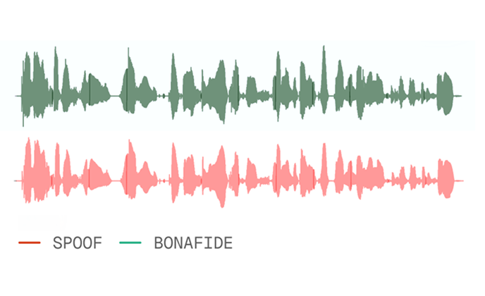 TTS audio submitted for voice biometric verification — indistinguishable from authentic speech to standard tools.